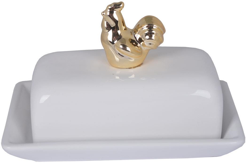 Ewax Maselniczka Ceramiczna Biała Ze Złotym Kogutem 18,5X11,5X13Cm Gdynia