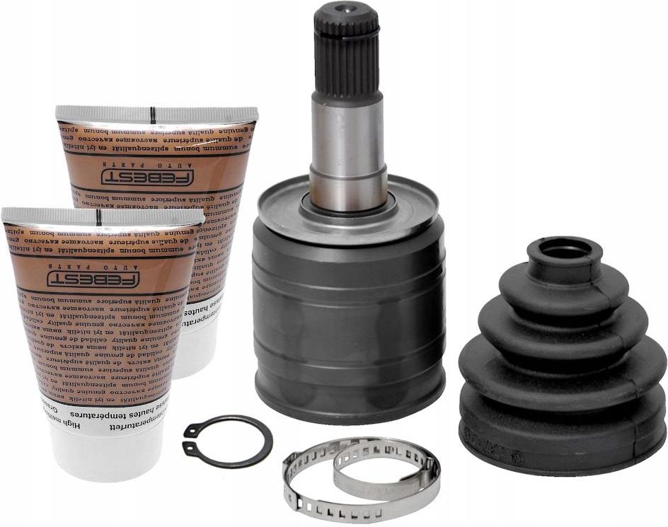 Przegub wewnętrzny. Miejsce montażu - przód / lewa strona Wymiary: wewnętrzne uzębienie od strony koła: 25 zewnętrzne uzębienie od strony koła: 25 gniazdo wewnętrzne - łożysko 5 kulkowe W komplecie opaski, osłona gumowa, smar oraz dwa zabezpieczenia. Producent - Febest Numery Mitsubishi - MB526146 …