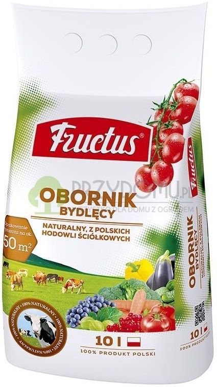 Fructus naturalny obornik bydlęcy 10l Fructus obornik bydlęcy 10l to naturalny nawóz do uprawy wszystkich roślin ogrodowych. Fructus obornik bydlęcy 10l to wysokiej jakości nawóz naturalny w formie granulowanej pozyskiwany z tradycyjnej ściółkowej hodowli zwierząt. Produkt pozbawiony jest nasion …