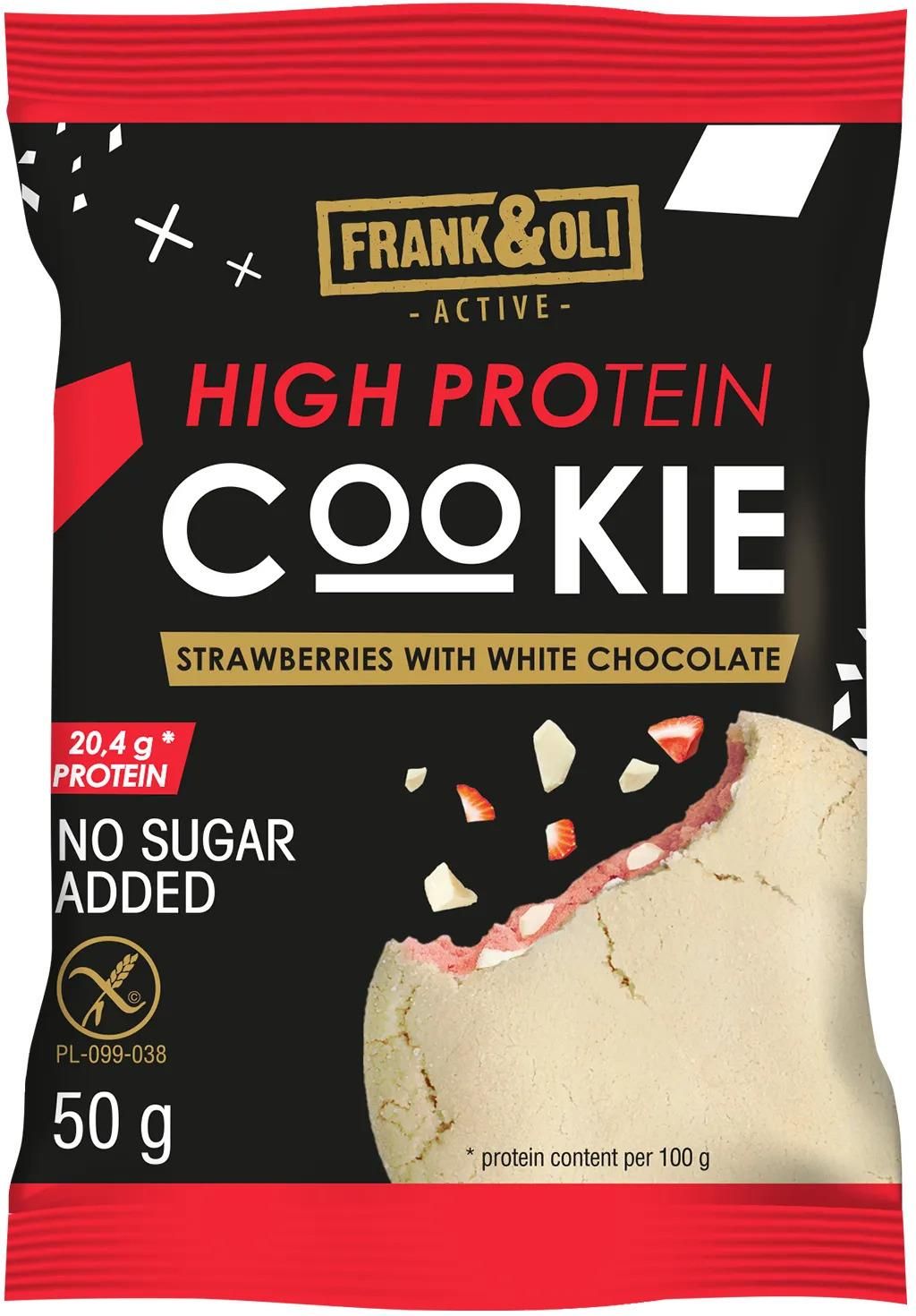 Frank&Oli High Protein Miękkie Ciasteczko Proteinowe Truskawki I Biała Czekolada 50g Gdynia