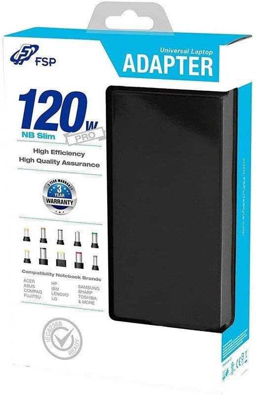 FSP NB Slim PRO. Przeznaczenie: Laptop, Typ zasilacza: Wewnętrzna, Napięcie: 100 - 240 V. Kolor produktu: Czarny. Szerokość produktu: 75,6 mm, Głębokość produktu: 151,3 mm, Wysokość produktu: 25,4 mm. Ilość na paczkę: 1 szt.