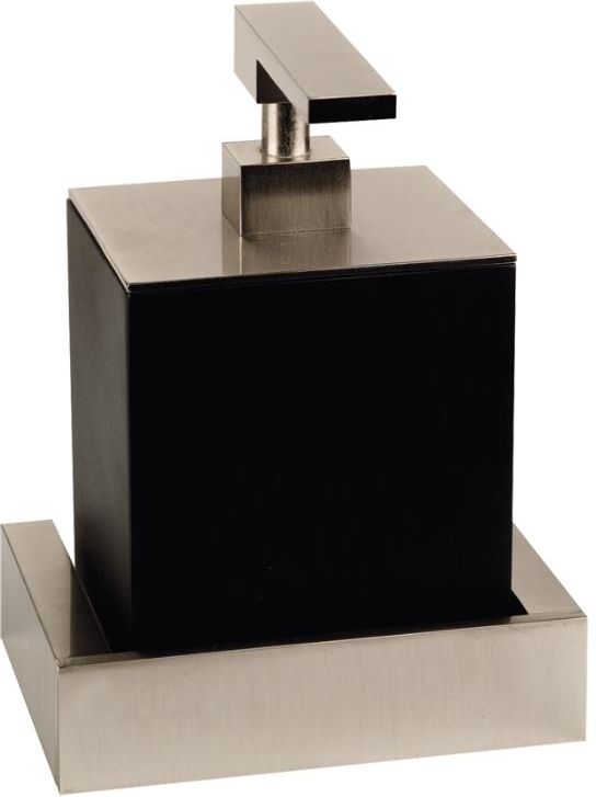 Gessi Rettangolo Dozownik na mydło (czarny) chrom 20814.031 / 20814031 Kolor uchwytu: chrom Na zdjęciu kolor szczotkowany nikiel Wymiary: Wysokość: 175 mm Szerokość dozownika: 105 mm Szerokość półki: 95x140 mm Cena dotyczy samego dozownika.