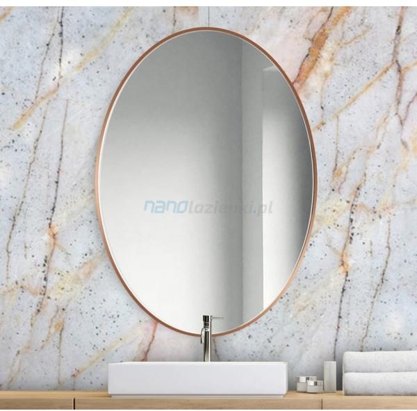 LUSTRO SCANDI SLIM OWALNE MIEDZIANE 70x105cm GieraDesign SCO/SL/M/70x105 Lustro Scandi Slim owalne miedziane Owalne lustro łazienkowe w bardzo wąskiej miedzianej ramce. Idealne do wnętrza w stylu nowoczesnym, skandynawskim czy industrialnym. Piękna dekoracja salonu, sypialni czy przedpokoju, ale nadaje się również do łazienki. Lustro miedziane Scandi Slim owalne urzeka ponadczasową prostotą i jakością wykonania. Miedziana rama wykonana jest z wodoodpornej płyty MDF lakierowanej twardym dwuskładnikowym lakierem poliuretanowym metalicznym. W nią wklejone jest lustro o wysokim połysku. Z tyłu zamontowane są wieszaki. Tył lustra zabezpieczony jest dodatkowo folią wzmacniającą, która zwiększa wytrzymałość lustra oraz w razie stłuczenia utrzymuje je w ramie. Od modelu Scandi różni się cieńszą ramką – tu ma zaledwie 12 mm oraz tym, że krawędzie tafli szklanej są odsłonięte i polerowane, dzięki czemu na styku z ramą powstaje piękny błysk. Lustro jest wykonywane na zamówienie. Nasze lustra wykonujemy z najwyższej jakości belgijskich luster o dużej przejrzystości i wysokim połysku (nie używamy luster sprowadzanych z Chin o nietrwałych podlewach!). Dbamy o każdy szczegół. Szlif i polerowanie krawędzi wykonujemy na najwyższej jakości włoskich maszynach do obróbki szkła.