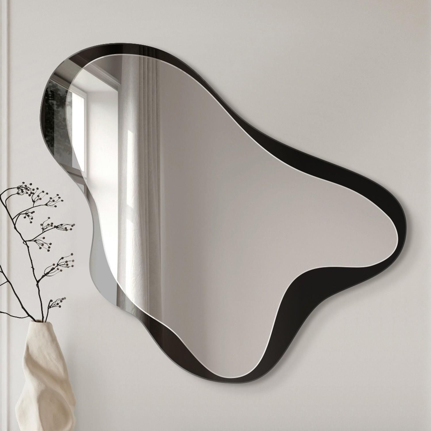 Lustro 108x100 cm GIERADESIGN OBSES czarne OBS/BK/108x100 Dekoracyjne lustro Obses o nieregularnej formie, to kolejny model z kolekcji Amore. Jego falujący, zmysłowy kształt zdaje się zmieniać, poruszać i rozprzestrzeniać niby feromony. Czarna nieregularna rama zwierciadła przykuwa wzrok, co czyni z niego doskonałą dekorację do salonu, sypialni lub jadalni. Zawieszone w przedpokoju oczaruje gości na wejściu. Lustro Obses w czarnej ramie doskonale pasuje do aranżacji nowoczesnych, w stylu paryskim lub tych urządzonych w sposób eklektyczny. To również świetny pomysł na ciekawy prezent ślubny lub na parapetówkę. Wymiary: 108x100 cm