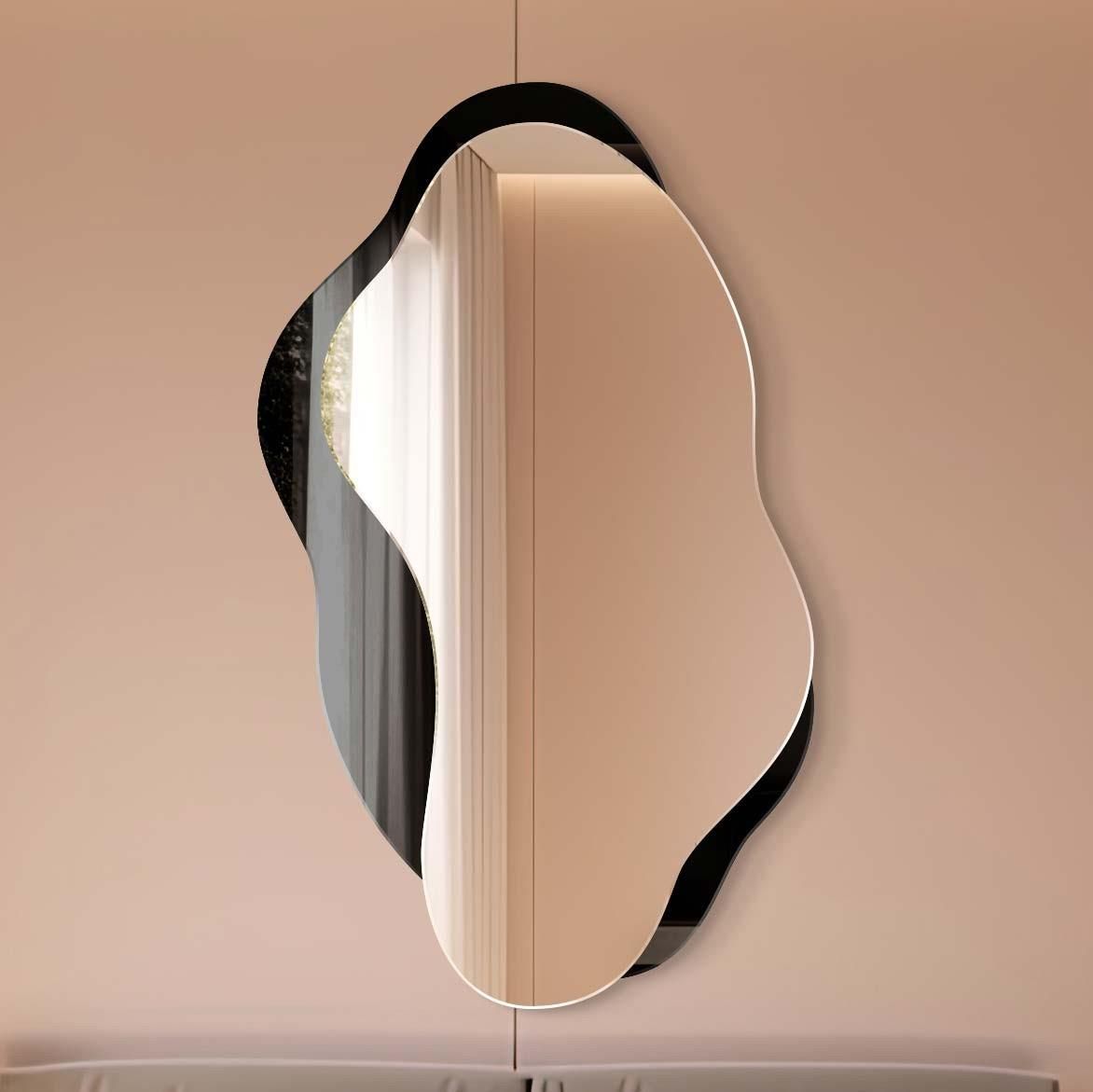 Lustro dekoracyjne 60x100 cm GIERADESIGN LIBIDO czarne LIB/BK/60x100 Lustro Libido, z kolekcji Amore, składa się z dwóch sklejonych ze sobą tafli o nieregularnym, organicznym kształcie – z czarnego szkła Lacobel i lustra opti white. Te kontrastujące ze sobą materiały, choć różne, tworzą wspólnie harmonijną całość – podobnie jak ludzie w związku. Nieregularne falujące kształty lustra Libido przywodzą na myśl miłosny uścisk i złączenie ciał. Są przyjemne dla oka i wprowadzają do architektonicznych aranżacji lekkość i miękkość linii. To bardzo ciekawa propozycja do nowoczesnych wnętrz. Doskonale ozdobi sypialnię, salon czy jadalnię, a w większym wymiarze, sprawdzi się również w przedpokoju. Lustro dekoracyjne Libido, to również świetna propozycja na prezent ślubny lub na parapetówkę. Wymiary: Dostępne wymiary: 54x90, 60x100, 66x110, 72x120, 78x130, 84x140, 90x150, 96x160 cm.To lustro możesz również zamówić na indywidualny wymiar. Zdjęcie poglądowe.