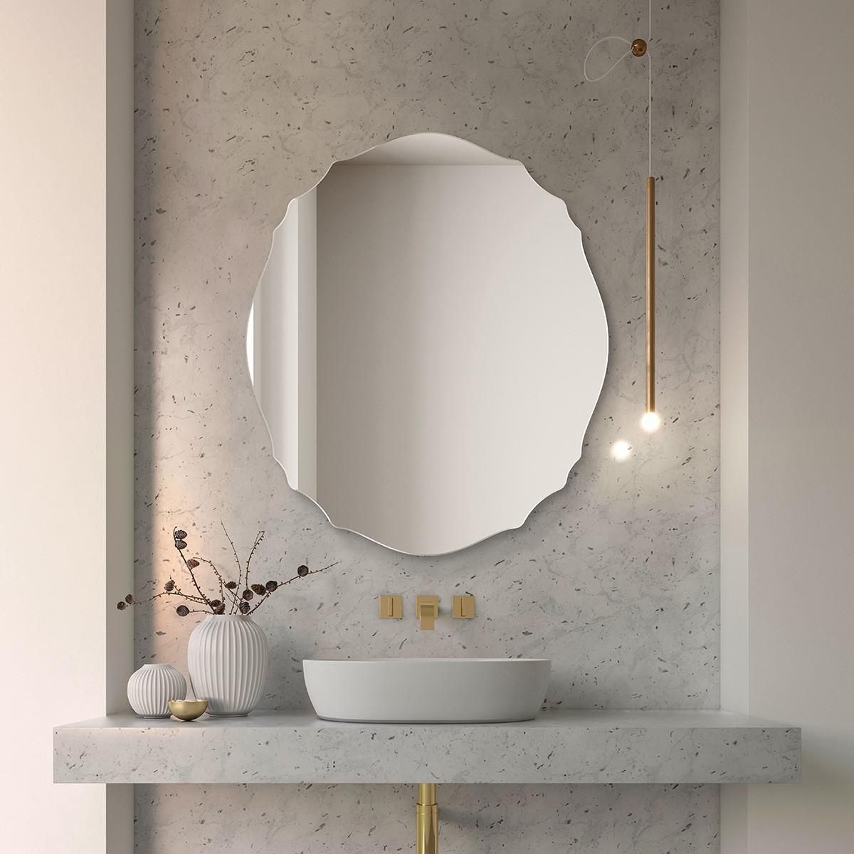 Lustro owalne 80x90 cm GIERADESIGN GRAND MONO GRA/MO/76X90 Owalne lustro stylowe Grand Mono z falą. Jego pałacowy styl nada pomieszczeniu wyrazu, a nieregularny kształt na tle wzorzystej tapety będzie zjawiskową dekoracją. Doskonałe do łazienki, ale będzie również niebanalną dekoracją nad komodę w …