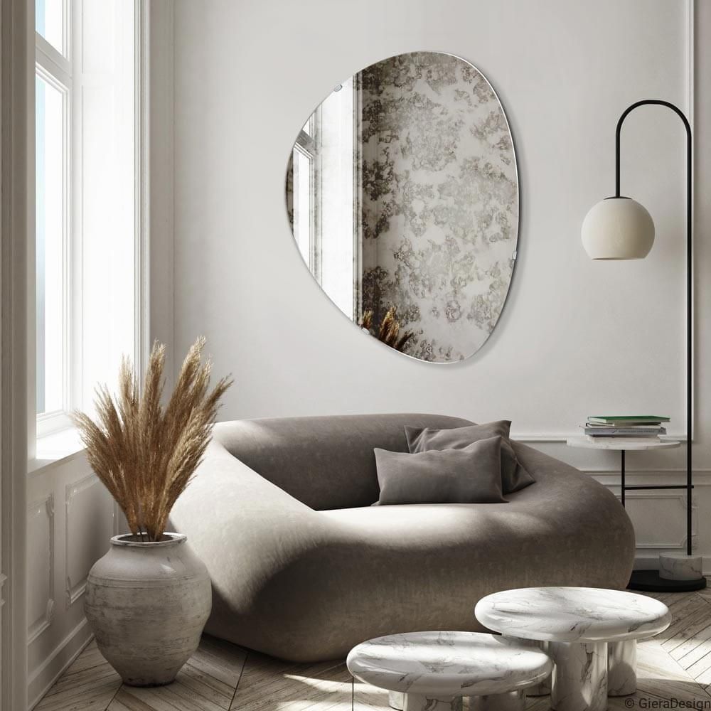 LUSTRO POSTARZANE FLY CORROSI 90X120CM GIERADESIGN FLY/COR/90x120 Do wyboru kolor zapinki: srebrny lub złoty Opis produktu: Lustro postarzane Fly Corrosi Sztucznie postarzone lustra antyczne o nieregularnym obłym kształcie, inspirowanym formami popularnymi w latach 50. i 60. XX wieku. Ale nie tylko to przyciąga wzrok. Równie interesująca jest nierównomiernie poplamiona powierzchnia tafli lustrzanej, sprawiająca wrażenie, jakby srebrny podlew złuszczył się i przebarwił wraz z upływem lat. Oczywiście, to nowy produkt, ale zaprojektowany zgodnie z trendem, który promuje modę na przedmioty niedoskonałe, odbiegające od przyjętych w naszej kulturze kanonów piękna. Nasza rada: Lustro Fly Corrosi pełni funkcję typowo dekoracyjną. Jeśli podoba ci się ten kształt, ale zależy ci na walorach użytkowych lustra, zobacz model Fly ze standardową taflą. Modne lustro o nieregularnym kształcie, w stylu mid-century modern. Doskonałe do eklektycznych wnętrz. Idealne pasuje do salonu czy jadalni nad komodę. Wykonane z lustra antycznego, postarzanego. Lustro postarzane - nierównomiernie „poplamione”. Krawędzie lustra szlifowane i polerowane. Mocowanie na wieszakach lub za pomocą metalowych spinek. Na życzenie może być bez wieszaków do przyklejenia. Podlew lustra zabezpieczony jest teflonem, co chroni je przed korozyjnym działaniem wilgoci. Lustro jest wykonywane na zamówienie. Nasze lustra wykonujemy z najwyższej jakości belgijskich luster o dużej przejrzystości i wysokim połysku (nie używamy luster sprowadzanych z Chin o nietrwałych podlewach!). Dbamy o każdy szczegół. Szlif i polerowanie krawędzi wykonujemy na najwyższej jakości włoskich maszynach do obróbki szkła. Zdjęcie poglądowe.