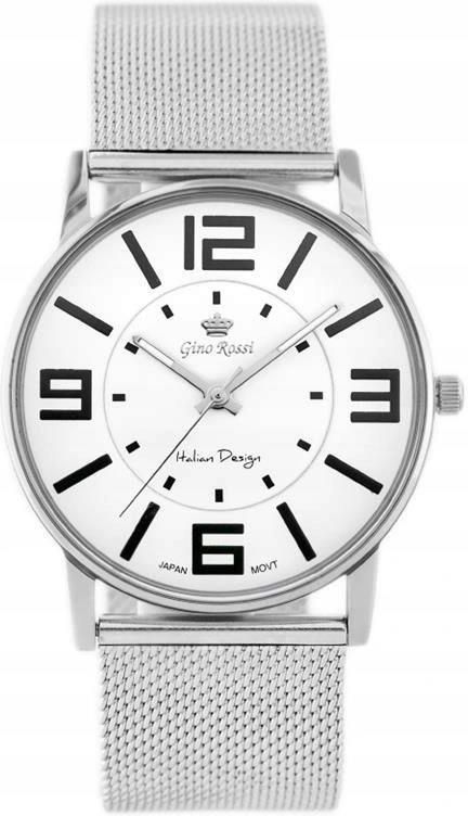 Zegarki marki G. Rossi to przede wszystkim wysoka jakość materiałów, niezwykła dokładność wykonania, dbałość o szczegóły, sprawdzony oraz niezawodny mechanizm, a także nawiązania do włoskiego designu. Odpowiadają one na najnowsze trendy we wzornictwie, a kunszt ich wykonania dowodzi, iż dopiero kreatywne połączenie klasyki z nowoczesnością, tworzy modny, elegancki i często nieodzowny dodatek będący ozdobą oraz wykończeniem każdego stroju. POWŁOKA IPS / IPG / IPR / IPB Pokrywanie powłoką IP jest innowacyjną, jonową metodą pozłacania bądź posrebrzania wierzchniej warstwy czasomierzy poprzez rozpylanie złotego proszku połączonego z innym metalem. Stworzona w wyniku tego procesu powłoka jest gładka, odporna na ścieranie i zachowująca głębię koloru. METALOWA BRANSOLETA Metalowa bransoleta zegarka jest bardzo wytrzymała na uszkodzenia mechaniczne, solidna oraz łatwa do utrzymania w czystości. Wszelkie zabrudzenia można usunąć za pomocą wody z mydłem, przy czym należy ją starannie osuszyć. Metalowa bransoleta jest produktem trwałym i nie wymaga częstego wymieniania w porównaniu do innych tworzyw. Uniwersalność metalowej bransolety sprawia, iż pasuje do wielu stylizacji. WYMIARY: koperta: 40 x 48 x 8mm średnica tarczy: 38mm szerokość bransolety: 24/22 mm maksymalny/minimalny obwód wewnętrzny: ok. 20,5/15,5 cm KOLORYSTYKA: tarcza: biała indeks: czarny bransoleta: srebrna koperta: srebrna W komplecie oryginalne pudełko prezentowe - idealne na prezent