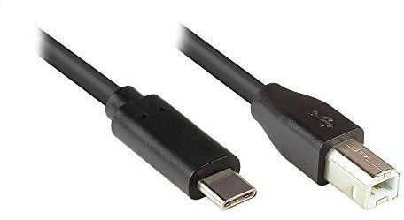 Kabel przyłączeniowy USB 2.0 / kabel adaptera / kabel do drukarki. Przyłącza: USB-C Wtyczka do USB 2.0 Wtyczka B USB 2.0 Standard: High-Speed, szybkość transmisji danych do 480 Mb/s, kompatybilny wstecznie Wysoka jakość: przewodnik miedziany (Power AWG23, Data AWG28), oplot i ekranowanie foliowe, pozłacane styki Długość: 0,5 m / 50 cm - czarny kompatybilne urządzenia: PC