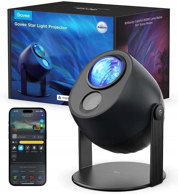Projektor nieba Govee z efektem fal oceanicznych i dynamicznymi efektami, kompatybilny z Matter, ponad 40 trybami scen, 18 opcji białego szumu, lampka nocna do sypialni (bez zasilacza) [klasa energetyczna G] Kod produktu: H6093011 Rodzaj produktu: Projektor Świetlny Łączność Wi-Fi, Bluetooth Wysoka jakość i wiele trybów O tym przedmiocie Przestronna projekcja fal o powierzchni 50 m²: Dzięki 4 diodom LED RGBW i podwójnej soczewce, projektor rozgwieżdżonego nieba Govee tworzy żywe fale wodne na powierzchni 50 m² w sypialni lub salonie. Łączy fale i gwiazdy, tworząc imponującą podwodną atmosferę. Bezproblemowo dostosowuje się do różnych sytuacji: projektor rozgwieżdżonego nieba Govee oferuje ponad 40 predefiniowanych trybów scen do medytacji, imprez i spotkań. Dostosuj miliony kolorów i efektów falowania oraz dodaj gwiazdy laserowe w trybie błysku/orbity, aby stworzyć dowolną atmosferę. INTELIGENTNE STEROWANIE Z MATTER. Projektor rozgwieżdżonego nieba Govee umożliwia inteligentne sterowanie za pomocą Alexy, Google Home i innych systemów kompatybilnych z Matter. Dzięki sterowaniu głosowemu masz wolne ręce i nie musisz wstawać w nocy, aby dostosować jasność światła. Smart Sleep Companion – 18 ścieżek dźwiękowych o wysokiej rozdzielczości z białym szumem, zsynchronizowanych z wizualizacją fal wodnych. Światło jest przyciemniane, aby stworzyć kojącą atmosferę przed snem, która pomaga się zrelaksować i zasnąć. Rano staje się jaśniejsze, symulując naturalne budzenie się przy dźwiękach oceanu. Smart Sleep Companion to 18 ścieżek o wysokiej rozdzielczości z białym szumem, zsynchronizowanych z wizualizacją fal wodnych. Światło jest przyciemniane, aby stworzyć kojącą atmosferę przed snem, która pomaga się zrelaksować i zasnąć. Rano staje się jaśniejsze, symulując naturalne budzenie się przy dźwiękach oceanu. Technologia cichego snu: projektor gwieździstego nieba Govee dla dzieci generuje hałas poniżej 25 dB – ciszej niż szept. Jego cicha praca zapewnia spokojny sen, idealny jako lampka nocna dla dzieci i osób z lekkim snem. UWAGA DOTYCZĄCA ZASILANIA: Ten projektor Starlight nie jest dostarczany z zasilaczem, lecz z kablem USB. Do zasilania należy używać standardowego zasilacza 5 V DC. Zalecany jest zasilacz 5 V DC 2 A lub większy. Stwórz magiczną atmosferę w pokoju Przenieś się do magicznego świata świetlnych spektakli dzięki Govee Star Light Projector. Ten nowoczesny projektor oferuje 3 unikalne efekty aurory, które realistycznie odwzorowują północne światła, tworząc hipnotyzującą atmosferę w każdym pomieszczeniu. Idealny zarówno do relaksu, jak i tworzenia nastroju podczas wieczorów filmowych, medytacji czy romantycznych spotkań. Trzy dynamiczne tryby świetlne naśladujące naturalne zjawiska świetlne dodają głębi i uroku przestrzeni. Drobne, migoczące gwiazdki tworzą realistyczny efekt nocnego nieba. Różnorodne projekcje Zarządzaj efektami świetlnymi za pomocą aplikacji Govee Home, aby dostosować kolory, jasność i prędkość animacji do swoich potrzeb. Możliwość synchronizacji z muzyką dzięki wbudowanemu czujnikowi dźwięku sprawia, że światła pulsują w rytm Twojej ulubionej melodii. Kompaktowy i stylowy design sprawia, że projektor idealnie pasuje do sypialni, salonu, biura czy pokoju dziecięcego. Projektor jest łatwy w obsłudze, energooszczędny i gwarantuje wyjątkowe wrażenia wizualne, które zachwycą zarówno dzieci, jak i dorosłych. Dzięki Govee Star Light Projector stworzysz niezapomnianą atmosferę w każdej chwili! Specyfikacja techniczna Rodzaj: Projektor Zasilanie: Sieciowe Sterowanie: Głosowe, Aplikacja Łączność: Bluetooth, Wi-Fi Dołączone akcesoria: Zasilacz Instrukcja obsługi