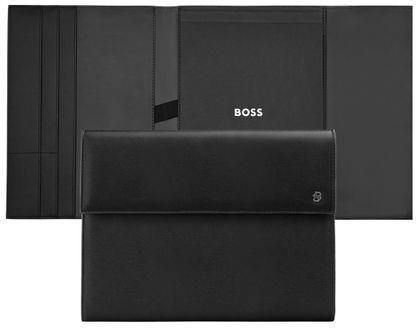 Ta teczka A4 od BOSS to doskonałe minimalistyczne akcesorium. Wykonany z miękkiej, teksturowanej, matowej czarnej tkaniny PU, posiada nową mini wersję płytki Double B i błyszczącą metalową płytkę. Logo BOSS jest wytłoczone z tyłu, dodając subtelny dotyk luksusu. Zaprojektowany, aby bez wysiłku łączyć się z całą kolekcją do pisania, ten folder oferuje zarówno styl, jak i funkcjonalność.