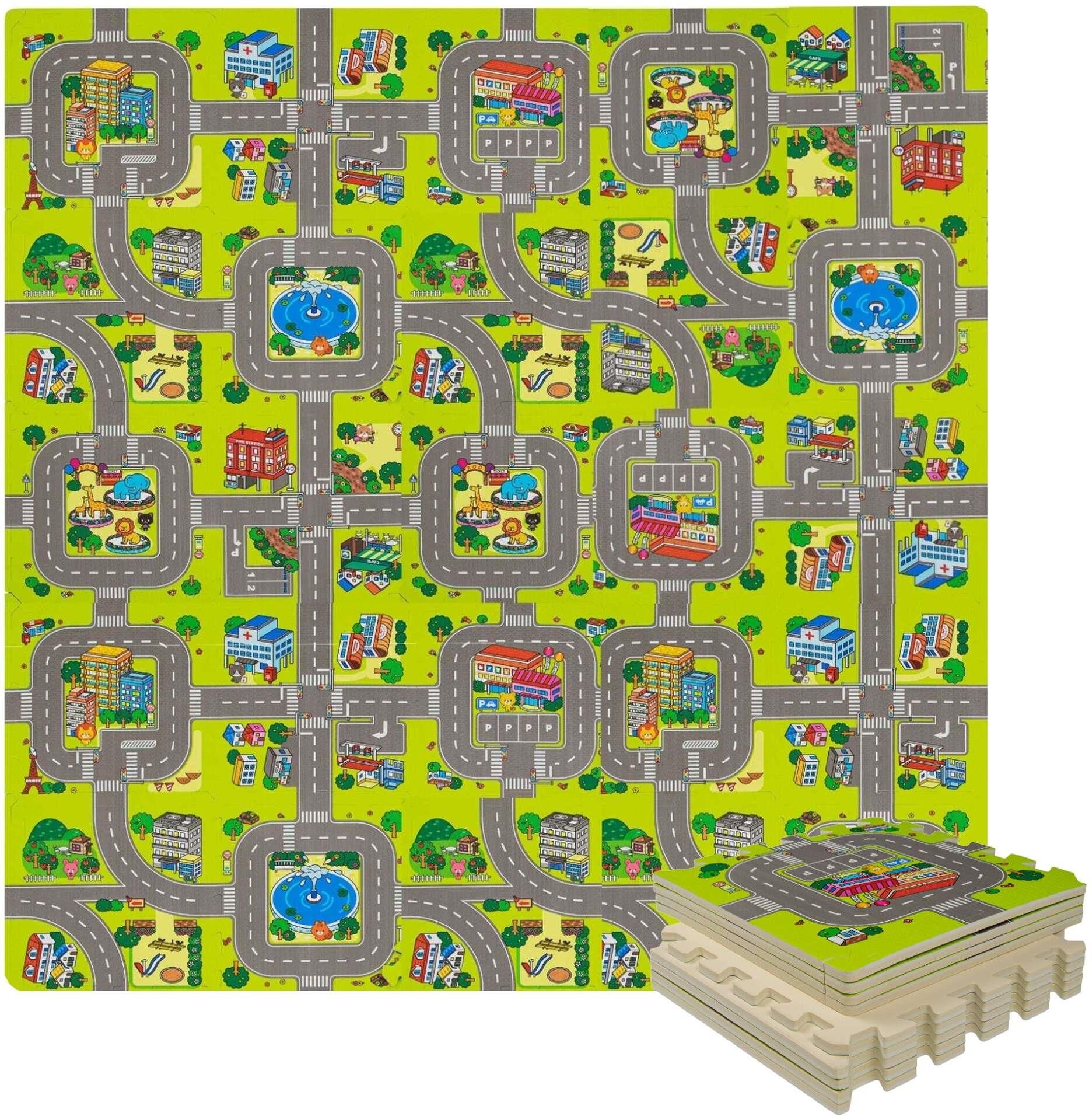 Humbi Mata edukacyjna Grube Puzzle piankowe 31,5 x 31,5 x 1 cm 63 elementy Kolorowe Ulice Miasto Uliczki Budynki Domy Domki Gdynia