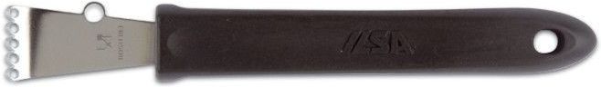Profesjonalny drapak- tarka do cytryn z serii tuttiXuno ze stali nierdzewnej, wyposażony w dodatkowe ostrze dekoracyjne, idealnie sprawdzi się do ścierania skórki cytrusów oraz tworzenia efektownych zdobień deserów, koktajli i dań głównych. Dzięki precyzyjnemu wykonaniu jest niezastąpionym narzędziem zarówno w kuchni domowej, jak i profesjonalnej. Seria tuttiXuno to szeroki wybór akcesoriów kuchennych, takich jak profesjonalne narzędzia, łopatki szefa kuchni i standardowe, skrobaki, akcesoria do pizzy, przybory aluminiowe oraz noże stołowe. Cechy produktu: Drapak i ostrze wykonane z wysokiej jakości stali nierdzewnej Solidne osadzenie narzędzi w nylonowej, ergonomicznej rączce Wygodny uchwyt – umożliwia pewne trzymanie w pozycji płaskiej i pionowej Praktyczny otwór na końcu uchwytu do zawieszania Idealny do tworzenia dekoracji z cytrusów i precyzyjnego ścierania skórki