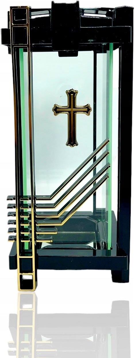 Znicz Lampion Solarny CENOTAF SERCE 31 cm wys. Piękny, nowoczesny znicz artystyczny w kolorystyce czarnej ze złotym. Znicz w środku wykonany jest z grubego szkła, na zewnątrz jest piękna dekoracja z tworzywa sztucznego w postaci pozłacanego serca. Na dnie znicza jest szklane lusterko, znicz jest ciężki i stabilny. W przykrywce znicza znajduje się panel fotowoltaiczny, który zasila migającą diodę LED wkładu znajdującego się wewnątrz. Znicz jest bezobsługowy, świeci całą dobę. szerokość podstawy:14 x 14 cm wysokość: 31 cm kolor znicza: Czarny. Pokrywa i podstawa z czarnego lakierowanego tworzywa materiał: szkło - tworzywo odporny na warunki atmosferyczne Całość wykonana bardzo estetycznie. Nowość 2024 Ręczne wykonanie Stabilny i ciężki - 1,50 kg