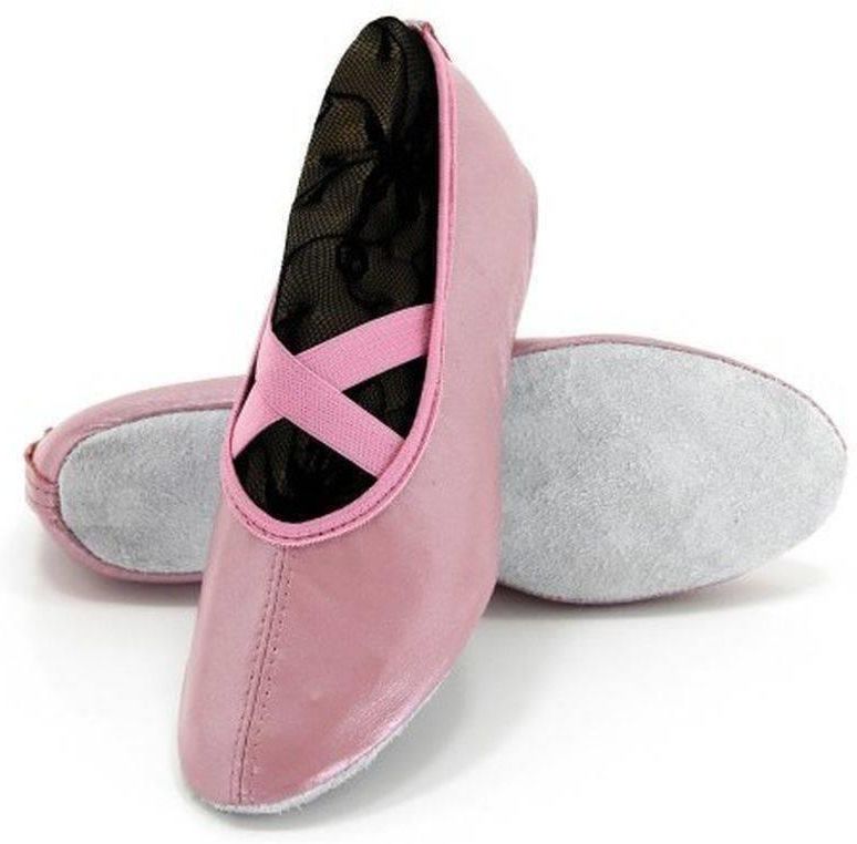 Baletki do tańca, na balet. Wykonane ze skóry naturalnej w pięknym różowym kolorze. Baletki posiadają miękką wkładkę i skrzyżowane gumeczki ściągające.