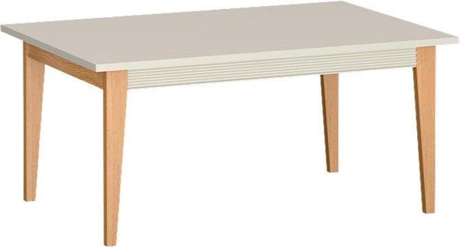 Stolik kawowy WINDSOR-12 łączy klasyczny design z nowoczesnym stylem. Blat w kolorze cashmere z wytrzymałej płyty laminowanej wspiera się na solidnych nogach z naturalnego dębu. To nie tylko piękna, ale i funkcjonalna ława do każdego wnętrza!