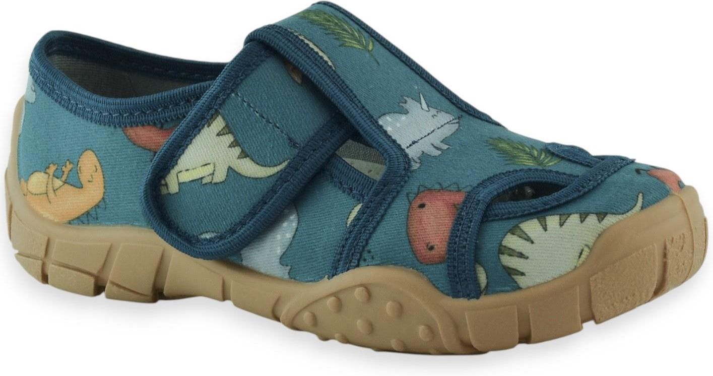 Chłopięce kapcie ze skórzaną wkładką i wentylowaną podeszwą to świetny wybór do domu, przedszkola lub szkoły. Nowoczesny fason, kolor i motyw dinozaurów z pewnością przypadną do gustu małym fanom przygód. Kapcie są lekkie, wygodne i idealne na co dzień.