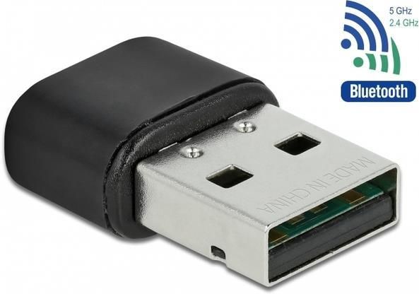 Opis Adapter Delock USB 2.0 2-w-1 Bluetooth i WLAN umożliwia komunikację bezprzewodową i przesył danych pomiędzy komputerem i telefonem komórkowym, lub siecią komórkową, albo drugą jednostką PC. Bluetooth 4.2 + EDR Bluetooth 4.2 zapewnia niski pobór mocy oraz szybki transfer danych. Ponadto łatwo paruje z innymi urządzeniami. Dwupasmowa WLAN 433 Mbps Klucz WLAN może być połączona z punktem dostępowym lub routerem WLAN w paśmie 2,4 GHz i 5 GHz. Pozwala także na połączenie ad-hoc z drugim komputerem. Specyfikacja • Złącze: 1 x USB 2.0 Typ-A męski • Chipset: Realtek RTL8821CU • Bluetooth • Standard Bluetooth 4.2, tryb dualny + EDR • Klasa 2, zasięg do 10 m • Zakres częstoliwości: 2,4 - 2,4835 GHz • Szybkość transmisji danych do 3 Mbps • Obsługa profilu Bluetooth A2DP • WLAN • Zgodność z IEEE 802.11ac/a/n/b/g • Tryb 1T1R z prędkością 433 Mbps @ 5 GHz lub 150 Mbps @ 2,4 GHz • Zakres częstotliwości: Pasmo 2,4 GHz + 5 GHz • Siła anteny: 1,78 dBi @ 5 GHz 4,15 dBi @ 2,4 GHz • Obsługuje WPA, WPA2 • Obsługuje DFS (Dynamic Frequency Selection) • Obsługuje WPS • Obsługuje MU-MIMO • 2 x Wskaźnik LED • USB Bus power • Wymiary (DxSxW): ok. 22,0 x 14,0 x 7,5 mm Wymagania systemowe • Windows 8.1/8.1-64/10/10-64 • Komputer osobisty lub laptop z wolnym portem USB Typ-A Zawartość opakowania • Adapter Bluetooth i WLAN • Sterowniki na CD • Instrukcja obsługi Opakowanie • Retail Box