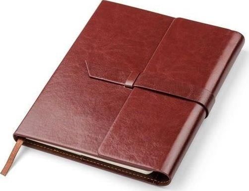 Notes KEMER VASCO A5 Brązowy Materiał: skóra ekologiczna Wymiary: 165 x 215 x 26 mm Kolory: czerwony Waga (kg): 0,344 Stan: Nowy Budowa: VASCO to elegancki notes formatu A5 w klasycznej okładce wykonanej z ekoskóry. Notes zawiera 80 kartek w linie oraz praktyczną wstążeczkę - zakładkę. Wewnątrz okładki miejsce na 3 wizytówki, długopis oraz pamięć USB. Okładka nie jest umocowana na stałe do bloku notesu, tylko nasuwana na pierwsze kartki, co daje możliwość wymiany notesu. Notes zamykany za pomocą paska z ekoskóry.