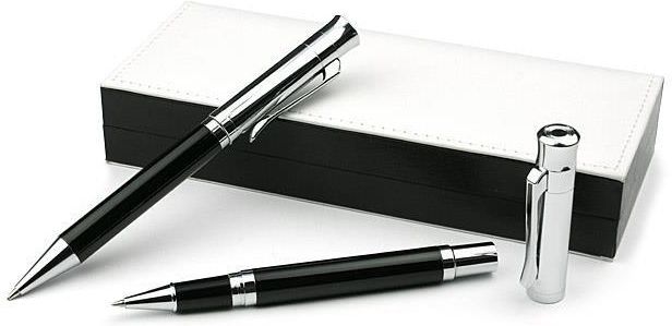 Zestaw piśmienniczy KEMER WASHINGTON Budowa: Komplet piśmienniczy WASHINGTON D. C. Zawiera metalowy długopis i pióro kulkowe oraz etui wykonane z ekoskóry. Elementy zostały zapakowane w białe pudełko.