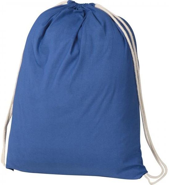 Worek bawełniany o gramaturze 140 g/m2 z certyfikatem OEKO-TEX. Zamykanie za pomocą ściąganych sznurków. Sznurki nie są regulowane.