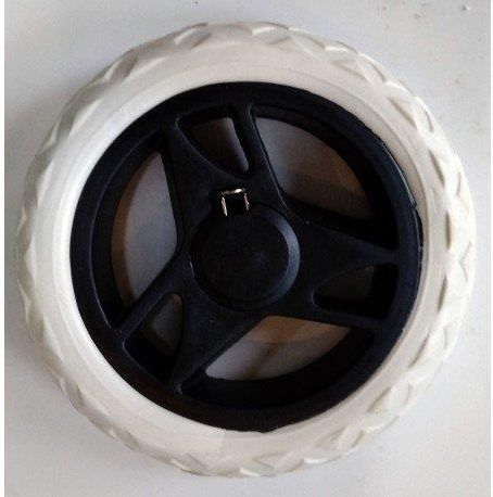 Koło do wózków na zakupy. Wykonane z miękkiej pianki PVC, co zapewnia ciche i płynne toczenie. Duża odporność na ścieranie. Montaż na zacisk, wystarczy wcisnąć na ośkę.