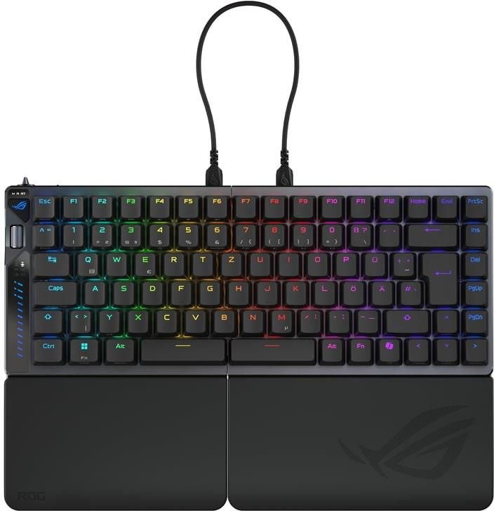 ASUS ROG Falcata. Rozmiar klawiatury: 75%. Styl klawiatury: Prosty. Technologia łączności: Przewodowy i Bezprzewodowy, Interfejs urządzenia: USB + RF Wireless + Bluetooth, Typ klawiatury: Magnetic-mechanical key switch, Układ klawiatury: QWERTZ. Typ podświetlacza: RGB LED, Podstawka na nadgarstek. …