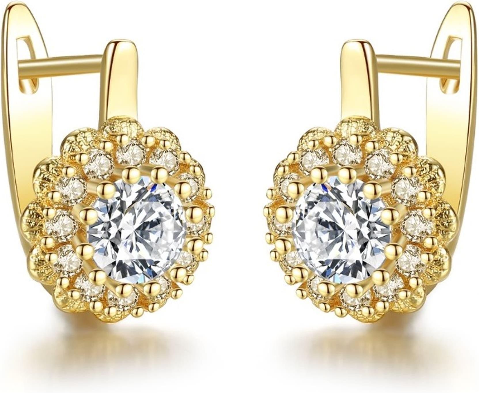 Kolczyki ze stali szlachetnej pozłacane 14k złotem, cyrkonie KST2858 Kolczyki damskie ze stali szlachetnej Eleganckie i stylowe kolczyki. Wymiary kolczyków: 1,4cm x 0,9cm Wymiary opakowania: 8,5cm x 7cm Waga: 4 g netto / 5 g brutto Kolor: jasne złoto Rodzaj zapięcia: angielskie Producent: inny STAL …