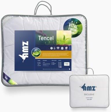 Kołdra Antyalergiczna 200x220 AMZ Tencel Zimowa Kołdra 200x220 AMZ Tencel Zimowa pokryta jest tkaniną, która łączy w sobie najlepsze cechy naturalnej bawełny i włókna Tencel™ dodatkowo uszlachetniona została formułą Vital Finish. Wypełnienie kołder to w 100% naturalne, wysokosprężyste oraz biodegradowalne włókno Tencel™ wytworzone z celulozy drzewnej. Możliwość prania w pralce w warunkach domowych oraz szybkie schnięcie pozwala łatwo zachować czystość wyrobów, oraz na wyeliminowanie roztoczy i innych drobnoustrojów. Tkanina pokryciowa: 50% Tencel™, 50% bawełny w splocie batystowym uszlachetnionej formułą Vital Finish. Dodatek formuły Vital Finish oznacza, że tkanina została wzbogacona o naturalne składniki pielęgnacyjne takie jak: Aloes - zawiera witaminę A,C i E, będące przeciwutleniaczami, witaminę B12, kwas foliowy i cholinę - antyoksydant neutralizujący wolne rodniki Witamina E - naturalny antyoksydant wyłapujący wolne rodniki, odpowiedzialne za starzenie się skóry. Witamina E spowalnia utlenianie się komórek ciała i przywraca skórze młodzieńczy blask. Olej Jojoba - zawiera witaminy A, E, F o działaniu odżywczym, przeciw starzeniowym i regeneracyjnym. Wypełnienie: 100% Tencel™, włókno Tencel™ produkowane jest z celulozy drzewnej pozyskiwanej z ekologicznych upraw drzew eukaliptusa, dębu i brzozy. Proces produkcji jest krótki, dzięki czemu zużywa się mniej wody i energii oraz na każdym etapie jest przyjazny dla środowiska. Charakterystycznymi cechami finalnego włókna Tencel™ są bardzo duża higroskopijność (zdolność do wchłaniania wilgoci) połączona ze zdolnością szybkiego oddawania wilgoci do otoczenia, Tencel™ jest nawet do 10 razy bardziej chłonny od bawełny, przy tym jest mocny jak poliester, a w dotyku przypomina jedwab, ponieważ jest idealnie gładki i chłodny w dotyku, świetnie sprawdza się jako wypełnienie kołdry zimowej. Włókno Tencel™ jest w 100% biodegradowalne. Ilość wypełnienia: 200x220 - 2200 g, około 500 g/m2. Klasa cieplna: kołdra w wersji zimowej, zwiększona ilość wypełnienia. Szycie i wykończenie: kołdra pikowana na nowoczesnych maszynach gwarantujących równomierne rozłożenie wypełnienia, wykończona jest białą lamówką. Gwarancja: kołdra AMZ Tencel 200x220 Zimowa objęta jest 2-letnią gwarancją producenta na błędy powstałe w produkcji. Podstawą do reklamacji jest dowód zakupu dołączony zawsze do zamówienia. Konserwacja: codziennie zaścielić, systematycznie wietrzyć, prać w pralce w temperaturze do 60℃. Suszyć w suszarce bębnowej stosując program do tkanin delikatnych lub w stanie rozwieszonym w temperaturze otoczenia, nie prasować, nie bielić, nie chlorować, nie czyścić chemicznie. Możliwość prania w pralce w warunkach domowych oraz szybkie schnięcie pozwala łatwo zachować czystość wyrobów. Maksymalna dozwolona temperatura prania 60℃ pozwala na wyeliminowanie roztoczy oraz innych drobnoustrojów. Opakowanie: kołdry z kolekcji AMZ Tencel zapakowane są w eleganckie torby, które poza walorami estetycznymi przede wszystkim zabezpieczają kołdrę podczas przechowywania oraz transportu.