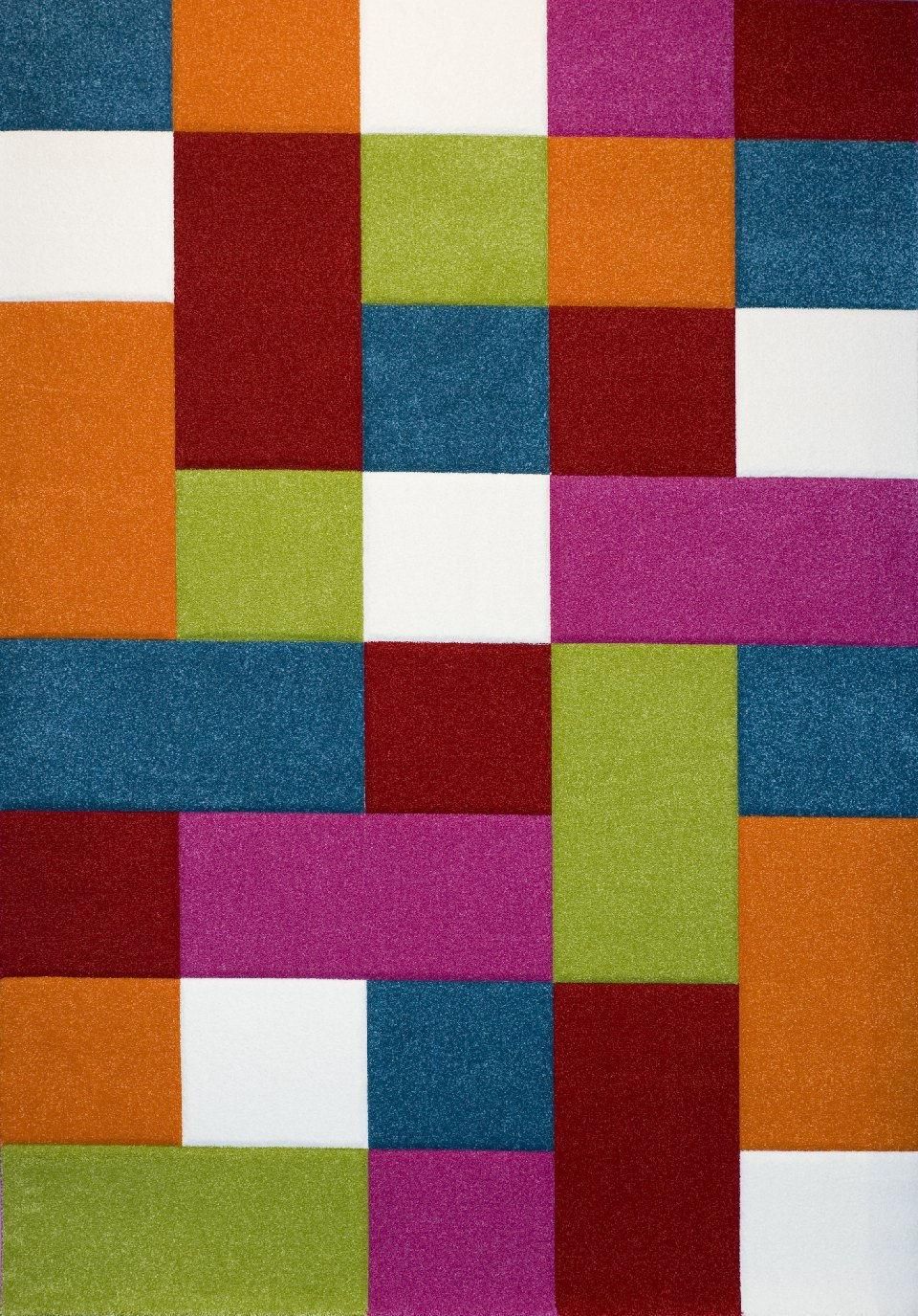 Dywan wielokolorowy z wzorem geometrycznym to nowoczesna propozycja dywanu dziecięcego z kolekcji Diamond Kids Colors. Prezentowany model dywanu w kratę sprawdzi się zarówno w roli dywanu dla dziewczynki, jak i dla chłopca. Miękkie i sprężyste runo to zasługa dywanu tkanego maszynowo z włókien polipropylenowych heat set frise, które wykazują wysoką odporność na ścieranie, wgniecenia i przebarwienia. Ponadto dywan dziecięcy jest w pełni bezpieczny dla alergików. Prezentowany dywan do pokoju dziecięcego występuje w kształcie prostokąta o różnych wymiarach – w tym średniej wielkości dywany 120x170 cm.