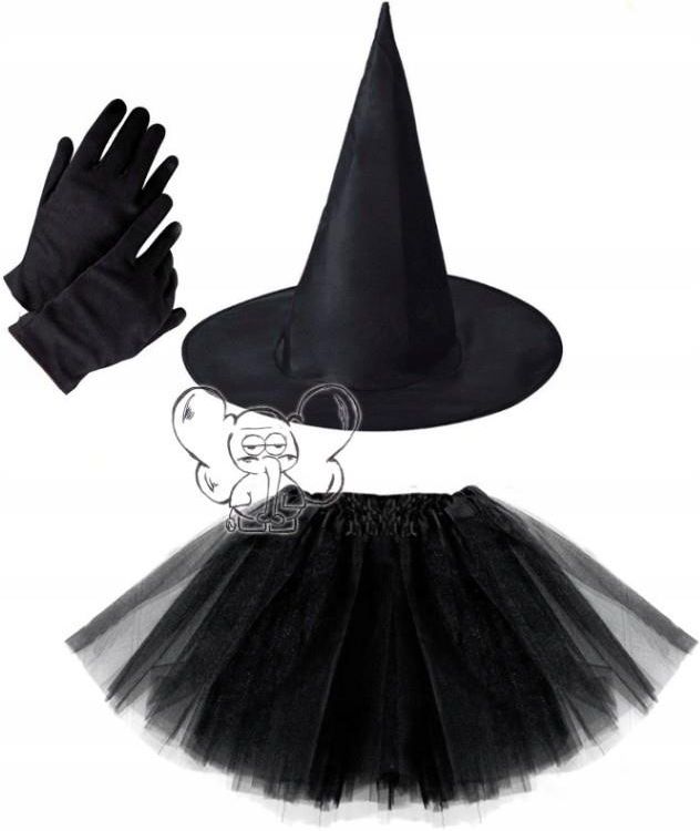 KOSTIUM CZAROWNICY 3 ELEMENTY: - KAPELUSZ CZAROWNICY CZARNY USZTYWNIANE RONDO WYSOKOŚĆ 49 CM RONDO 9 CM ŚREDNICA 40 CM ROZMIAR UNIWERSALNY - URZEKAJĄCA SPÓDNICZKA Z TIULU TRZYMAJĄCEGO KSZTAŁT 3 WARSTWY GRUBO NAKŁADANEGO TIULU TWORZĄCE PIĘKNĄ DUŻĄ PUSZYSTĄ BOMBKĘ GUMKA OBSZYWANA SATYNOWĄ LAMÓWKĄ WYMIARY ORIENTACYJNE : OBWÓD PASA 40CM , ROZCIĄGA SIĘ DO-80 CM DŁUGOŚĆ 40 CM ROZMIAR UNIWERSALNY- NA GUMCE - RĘKAWICZKI KOSTIUMOWE CZARNE ,ELASTYCZNE ROZMIAR UNIWERSALNY DŁ 24 CM