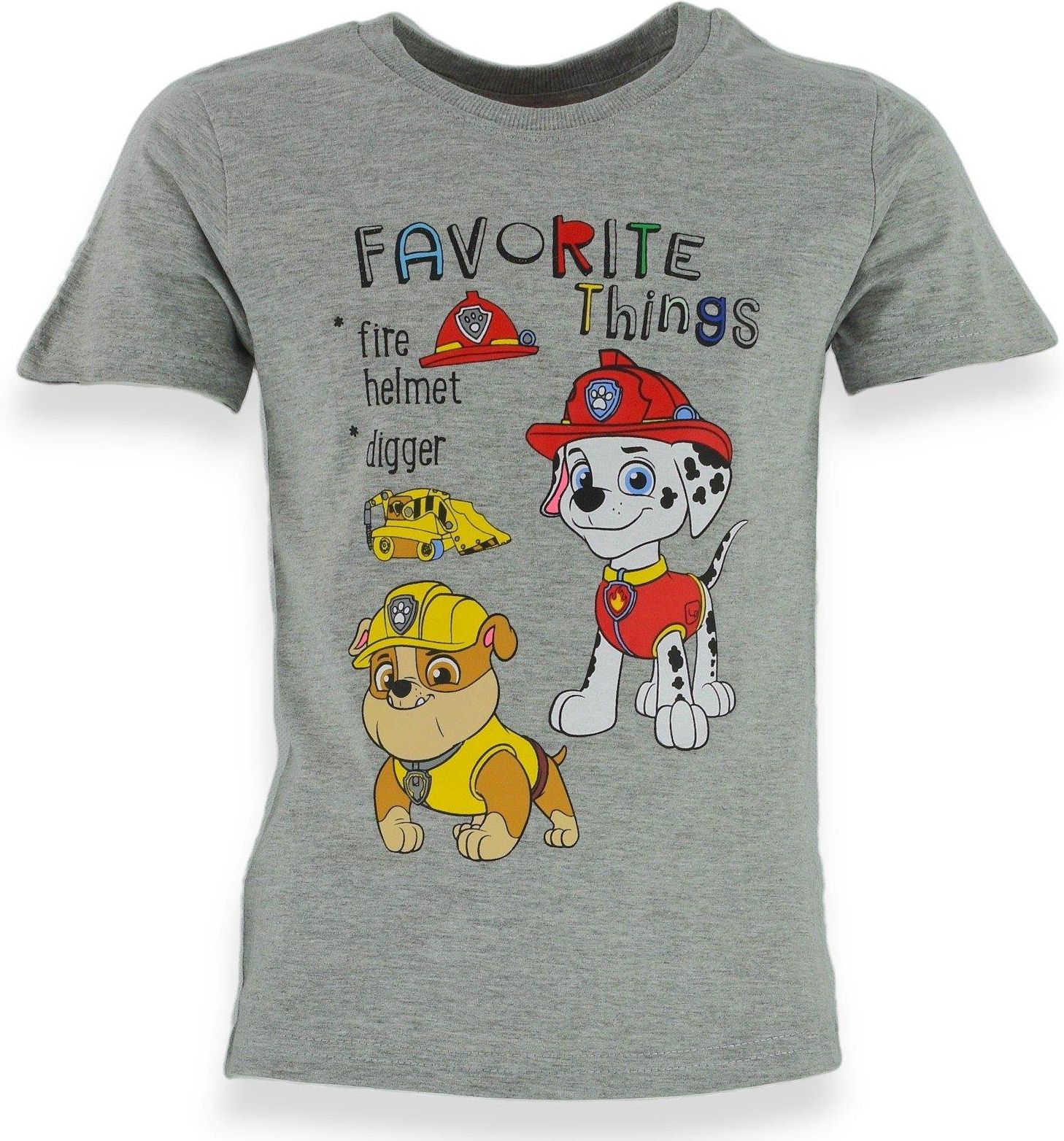 Chłopięca koszulka z wizerunkiem piesków z bajki Psi Patrol w szarym kolorze. Idealna na lato, wakacje. Skład : -90% Bawełna - 10% Wiskoza