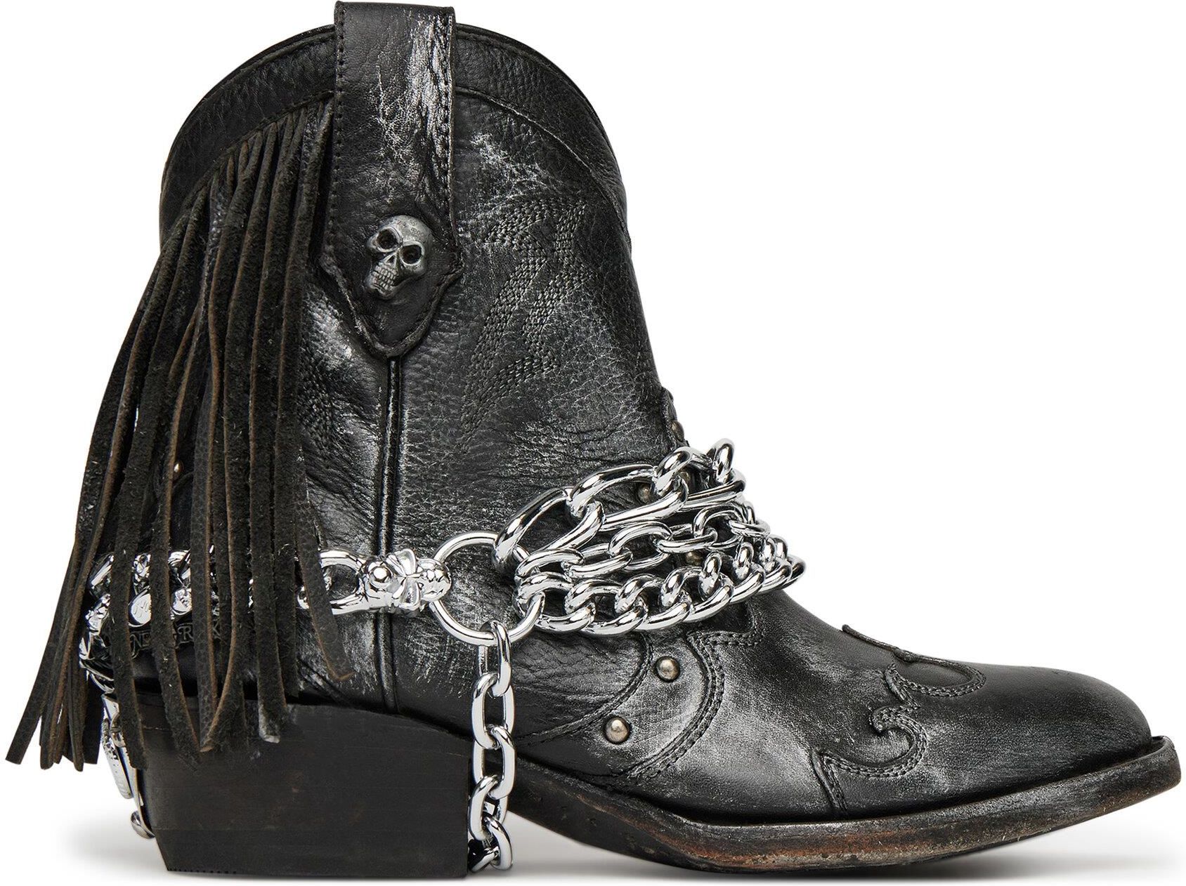 Dodaj do swojej kolekcji odważny akcent w postaci damskich kowbojek marki NEW ROCK! Wykonane z wysokiej jakości skóry naturalnej licowej, buty te łączą wyrazisty styl z niebanalnymi detalami. Szpiczasty nosek podkreśla ich charakter, a suwak zapewnia wygodę zakładania. Wykończone frędzlami, które dodają im dynamicznego i niepowtarzalnego wyglądu, te kowbojki będą idealnym wyborem dla kobiet ceniących niekonwencjonalne rozwiązania. Postaw na NEW ROCK i wyróżnij się w tłumie!