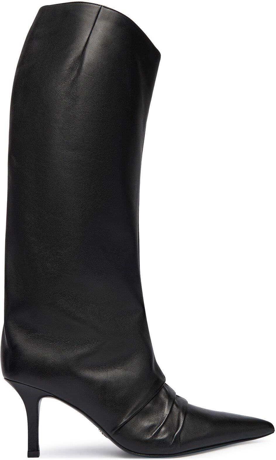 Podkreśl swoją kobiecość i elegancję dzięki kozakom damskim marki Patrizia Pepe! Wykonane ze skóry naturalnej licowej, zachwycają trwałością i szlachetnym wykończeniem. Szpiczasty nosek oraz szpilka dodają im wyrafinowanego charakteru, idealnie wpisując się w stylizacje na wyjątkowe okazje. Wsuwana konstrukcja pozwala na łatwe zakładanie, zapewniając jednocześnie wygodę noszenia. Te kozaki to doskonały wybór dla kobiet, które cenią sobie połączenie klasyki z nowoczesnym designem. Sięgnij po Patrizia Pepe i poczuj się wyjątkowo w każdej sytuacji!