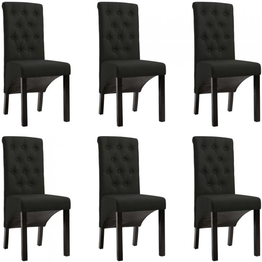 Krzesła do jadalni, 6 szt., czarne, tapicerowane tkaniną vidaXL Kolor: Array Rozmiar: Array Nasze krzesła stołowe charakteryzują się eleganckim i ponadczasowym designem, który przyciągnie uwagę w Twojej jadalni lub kuchni. Pokryte grubą, miękką w dotyku tapicerką meble zostały zaprojektowane w ergonomiczny sposób, aby zapewnić Ci komfort siedzenia. Nogi z litego drewna zwiększają ich stabilność i wytrzymałość. Montaż krzeseł jadalnianych jest łatwy. Przesyłka zawiera 6 krzeseł. Kolor: czarny Materiał: tkanina + rama z drzewa kauczukowego Wymiary całkowite: 42 x 57 x 95 cm (szer. x gł. x wys.) Szerokość siedziska: 42 cm Głębokość siedziska: 41 cm Wysokość oparcia: 48 cm Wysokość siedziska nad ziemią: 47 cm W skład przesyłki wchodzi 6 krzeseł Materiał: Poliester: 100%