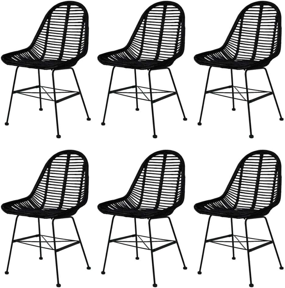 Krzesła Stołowe 6 Szt Czarne Naturalny Rattan Gdynia