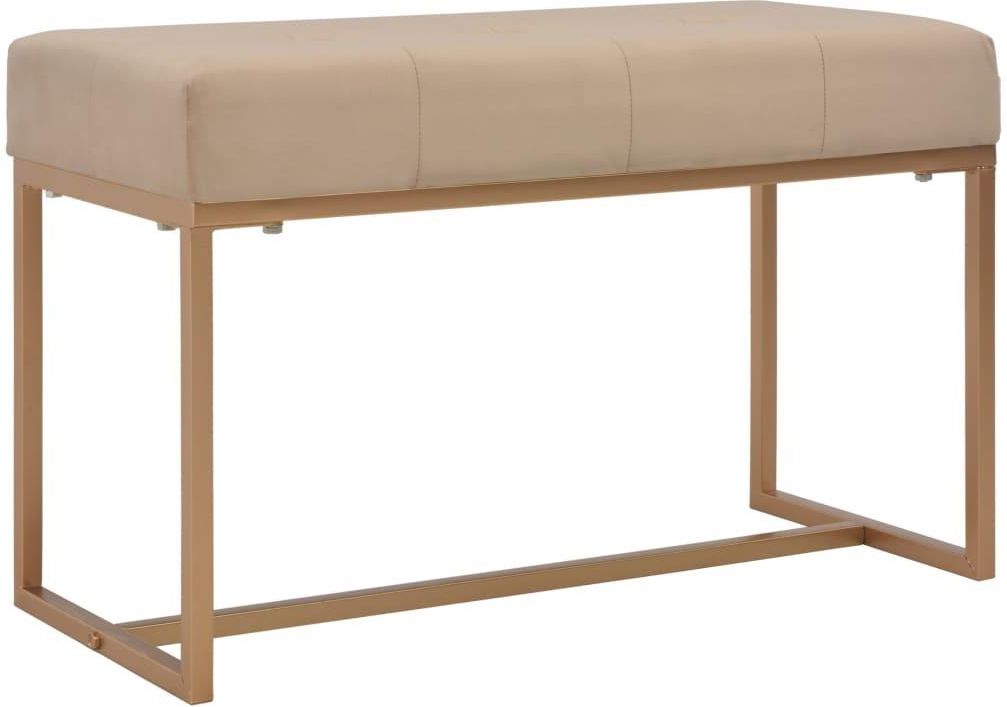 Nasza ławka będzie świetnym dodatkiem do wystroju salonu, przedpokoju lub holu. Pokryte beżowym aksamitem siedzisko będzie miękkie i przyjemne w dotyku, doda także nieco koloru do wystroju wnętrza. Dodatkowo malowane proszkowo żelazne nogi zapewnią stabilność i trwałość konstrukcji. Nasza ławka do przedpokoju w elegancki sposób ozdobi przestrzeń stając się nieodzownym elementem wyposażenia wnętrza. Montaż pokrytej aksamitem ławki jest prosty. Kolory: beżowy i złoty Materiał: siedzisko z pokryciem z aksamitu i żelazna rama malowana proszkowo Wymiary: 80 x 36 x 51 cm (szer. x gł. x wys.) Materiał: Poliester: 100%