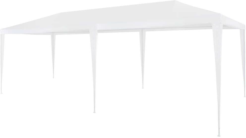 Nasz namiot imprezowy oferuje fantastyczne miejsce na wszelkiego rodzaju przyjęcia i spotkania z rodziną oraz przyjaciółmi. Namiot wykonano z odpornego na promieniowanie UV i wodę polietylenu, dzięki czemu jest bardzo praktyczny do użytkowania na zewnątrz. Rama z odpornej na rdzewienie stali czyni zadaszenie stabilnym i trwałym. Ta altanka ogrodowa jest łatwa w montażu. UWAGA: zalecamy spryskanie go sprayem impregnującym, jeżeli może być narażony na obfite opady deszczu. Tego produktu NIE WOLNO używać przy złej pogodzie, takiej jak silny wiatr, ulewny deszcz, śnieg, burza itp. Kolor: biały Materiał: dach z PE i stalowa rama Wymiary: 3 x 6 x 2,55 m (dł. x szer. x wys.) Wysokość okapu nad ziemią: 2 m Produkt odporny na wodę i promieniowanie UV Akcesoria montażowe w zestawie