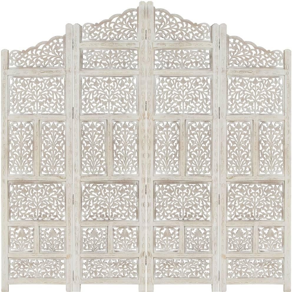Lumarko Parawan 4-panelowy, rzeźbiony, biały, 160x165 cm, drewno mango Gdynia