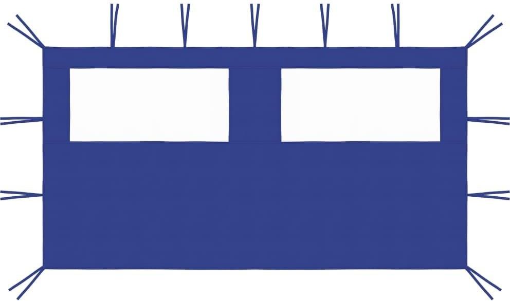 Ściana z oknami do altany jest idealnym wyborem do każdego namiotu imprezowego do ogrodu. Ściankę namiotu wykonano z tkaniny, dzięki czemu jest mocna i trwała. Skutecznie zapobiegnie przedostawaniu się komarów do Twojego miejsca rekreacji. Sznurki na krawędzi każdej ścianki ułatwiają montaż i zapewniają stabilność po zamocowaniu. Przezroczyste okno z PVC wpuści światło do namiotu, tworząc przyjemną atmosferę. Kolor: niebieski Materiał: tkanina (100% poliester), PVC Wymiary całkowite: 4 x 2 m (dł. x szer.) Wymiary okna: 150 x 70 cm (szer. x wys.) Gramatura tkaniny: 70 g/m²