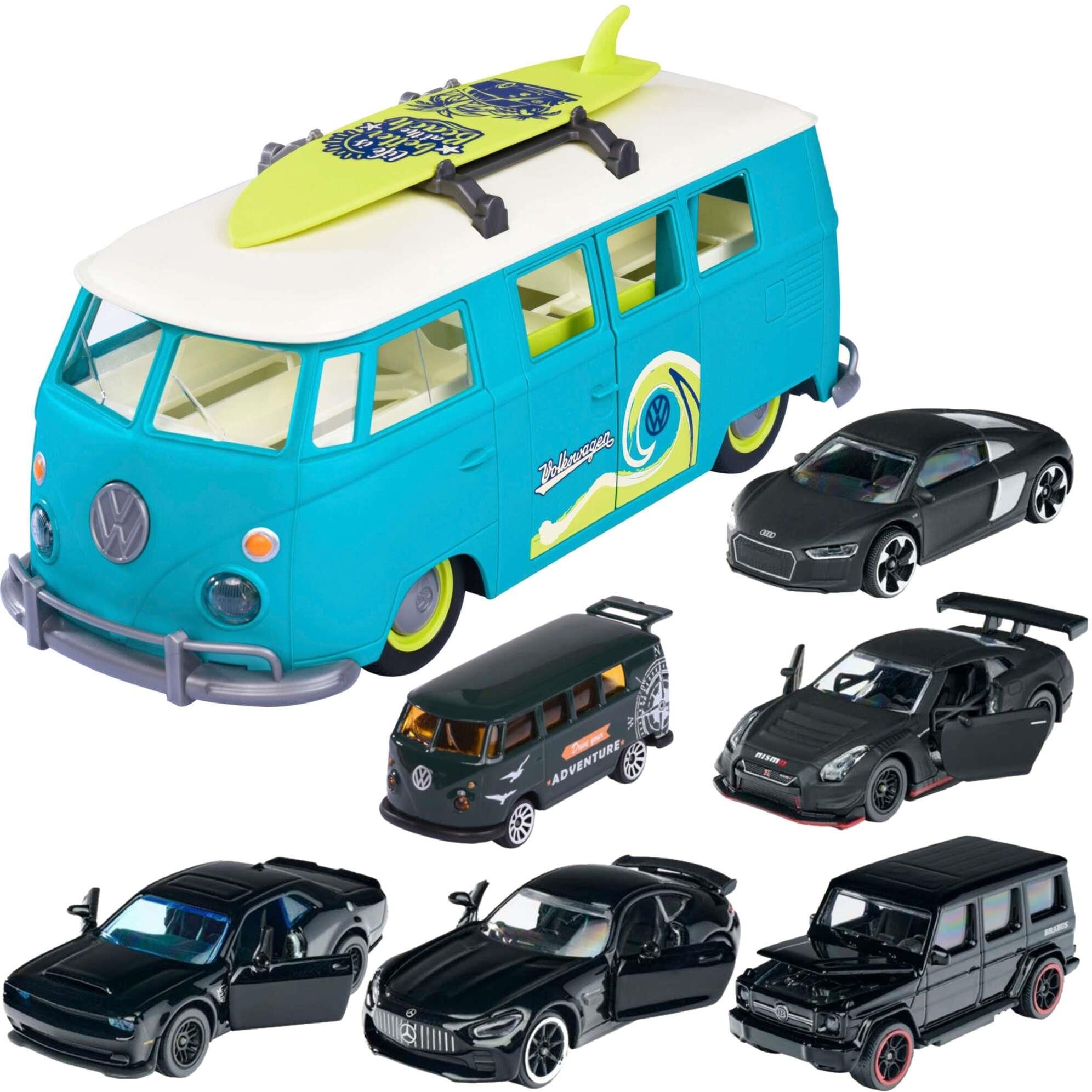 Majorette Zestaw Duży transporter aut walizka Volkswagen T1 + 6 pojazdów resoraki black edition Gdynia