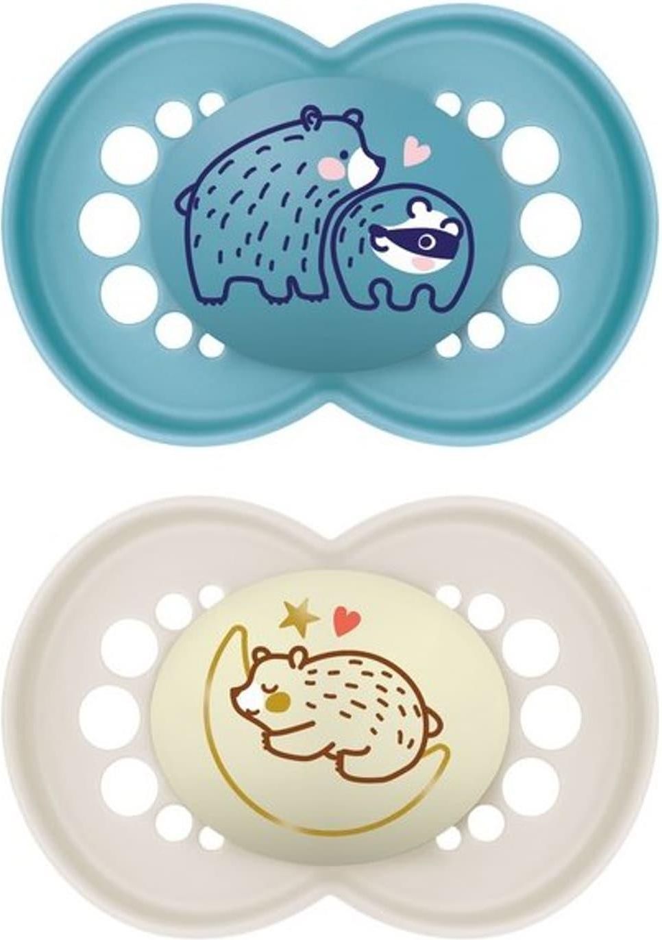 MAM BABY ORIGINAL PLANET LOVE NIGHT & DAY SMOCZEK ŚWIECI W CIEMNOŚCI 6-16 MIESIĘCY 2SZT MAM Smoczek Original 2-6 miesiące idealnie sprawdzi się już dla niemowlaków. Ten wyjątkowo smoczek ma, zapewniony przepływ powietrza, przez co jest przyjazny dla skóry i powoduje mniej podrażnień. Zaprojektowany przy współpracy ze stomatologami dla zdrowego rozwoju zębów, symetryczny kształt dopasowuje się do ust dziecka. Zalety produktu w skrócie: Guzik świecący w ciemności – łatwy do znalezienia Ortodontyczny Uspokaja i zapewnia dziecku poczucie komfortu Symetryczny, cienki i przyjazny dla szczęki smoczek Wykonany z silikonu MAM SkinSoftTM Sprzedawany w praktycznym pudełku do sterylizacji i przechowywania, umożliwiającym wygodną i szybką sterylizację w kuchence mikrofalowej Wszystkie produkty MAM wykonano z materiałów wolnych od BPA i BPS. Silikonowy smoczek MAM SkinSoftTM: łatwo akceptowany przez dzieci ze względu na znajome odczucia Dla niemowląt od 2 do 6 miesiąca Produkt sprzedawany w praktycznym pudełku do sterylizacji i przechowywania – do wygodnej i szybkiej sterylizacji w kuchence mikrofalowej 94% niemowląt akceptuje smoczek: łatwo akceptowany przez dzieci ze względu na znajome odczucia Tak, nasze smoczki MAM pomagają w prawidłowym rozwoju zgryzu i zębów u dziecka. MAM współpracuje z ekspertami medycznymi różnych specjalności przy opracowywaniu i projektowaniu innowacyjnych i fizjologicznie ukształtowanych smoczków, które odpowiadają różnym etapom rozwoju dziecka. Wszystkie smoczki MAM mają płaski i symetryczny kształt: nie ma „góry” ani „dołu”. Taki kształt sprawia, że nasze smoczki są zawsze prawidłowo umieszczone w buzi dziecka. Smoczki MAM są wyposażone w system wentylacji. Kiedy dziecko zamyka usta, powietrze uchodzi ze smoczka przez otwór wentylacyjny, przez co smoczek staje się bardziej płaski i przystosowuje się do jamy ustnej dziecka. Ostrożnie dla bezpieczeństwa dziecka. Przed każdym użyciem należy sprawdzić smoczek. Pociągnij smoczek we wszystkich kierunkach. W przypadku pierwszych oznak uszkodzeń lub wad, należy go natychmiast wyrzucić. Należy używać wyłącznie specjalnych pasków do smoczka, które odpowiadają EN 12586. Nigdy nie należy mocować innych taśm ani sznurków do smoczka, Twoje dziecko może się nimi udusić. Nie należy wystawiać smoczka na bezpośrednie działanie światła słonecznego lub wysokiej temperatury i nigdy nie wkładać go dłużej do roztworów dezynfekcyjnych niż jest to zalecane, ponieważ może to wpłynąć na zasysanie.
