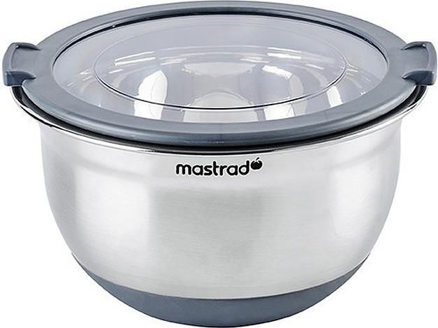 Miska stalowa 16 cm Miska ze stali nierdzewnej z antypoślizgowym dnem zapewnia stabilność w trakcie mieszania, może też zastąpić salaterkę. Przezroczysta pokrywka ułatwia przechowywanie, bez problemu sprawdzisz też jej zawartość. Podziałka wewnątrz umożliwia odmierzanie. Brzeg i uchwyty pokrywki zostały wykonane z silikonu. Średnica miski 16cm Materiał: stal nierdzewna silikon Wymiary miski z pokrywką: wysokość 11,5 cm, średnica 18,5, cm, pojemność 1,5l