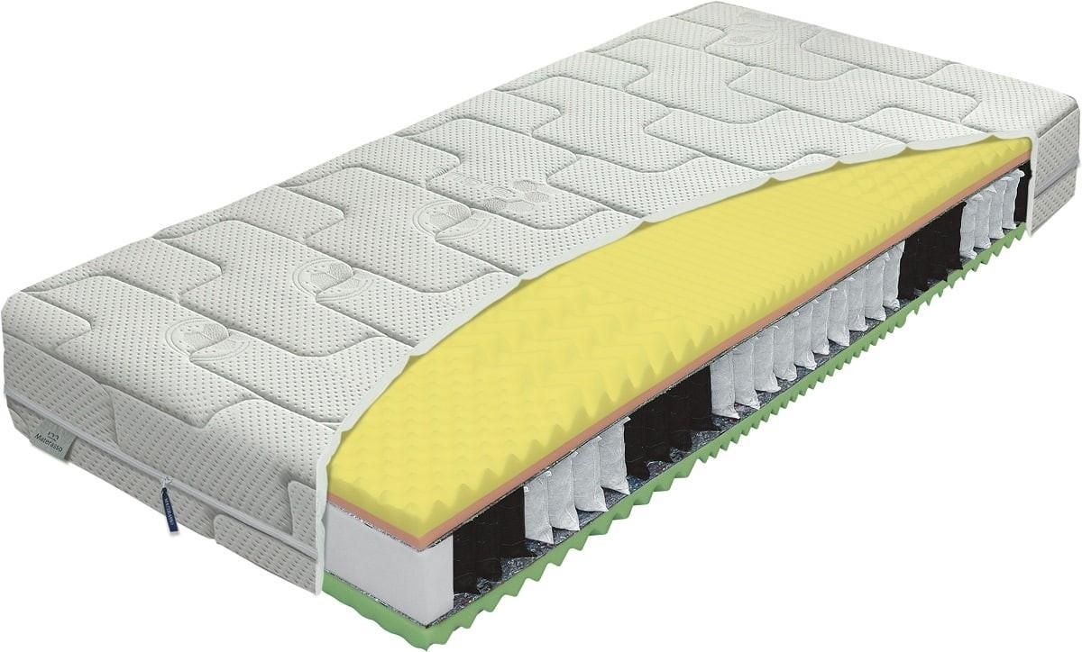 Materac Komodor Bio-ex Materasso Materasso Kolekcja: Materasso Trzon materaca składa się z 7-strefowego wkładu sprężyn kieszeniowych, które razem z przekładkami filcowymi tworzą trwałe i wytrzymałe podparcie dla zewnętrznych pianek. Z miększej strony znajduje się świetnie dopasowują się do ciała …