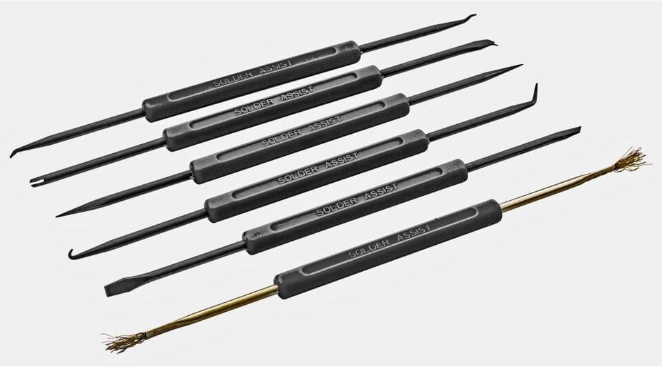 Zestaw 6 narzędzi do lutowania.Ten zestaw narzędzi do lutowania marki Meec Tools przeznaczony jest do napraw i rozlutowywania. Zestaw zawiera szydło, nóż, haczyk, widelec i stalowe szczotki. Specyfikacja techniczna Gwarancja (w miesiącach): 12 m.