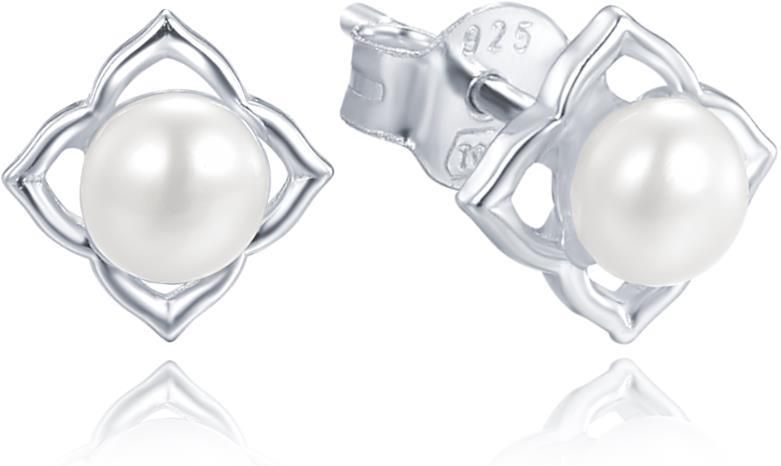 MINET Kolczyki srebrne kwiat z białą perłą Gdynia
