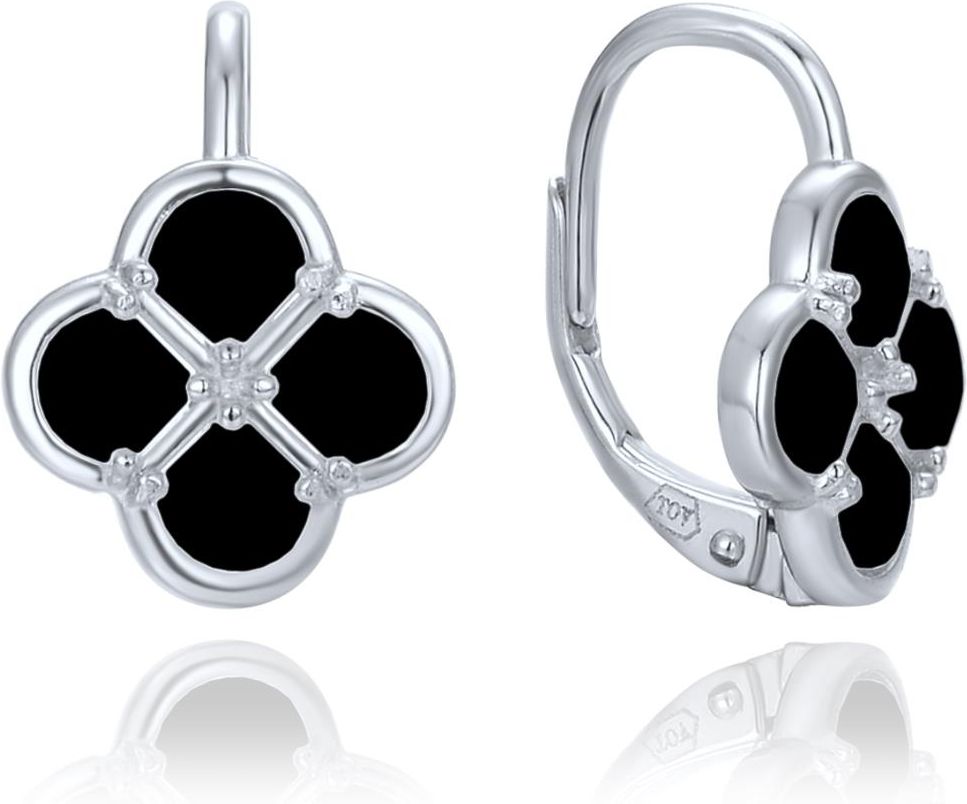 Minet Srebrne kolczyki koniczyna z czarną masą perłową Gdynia