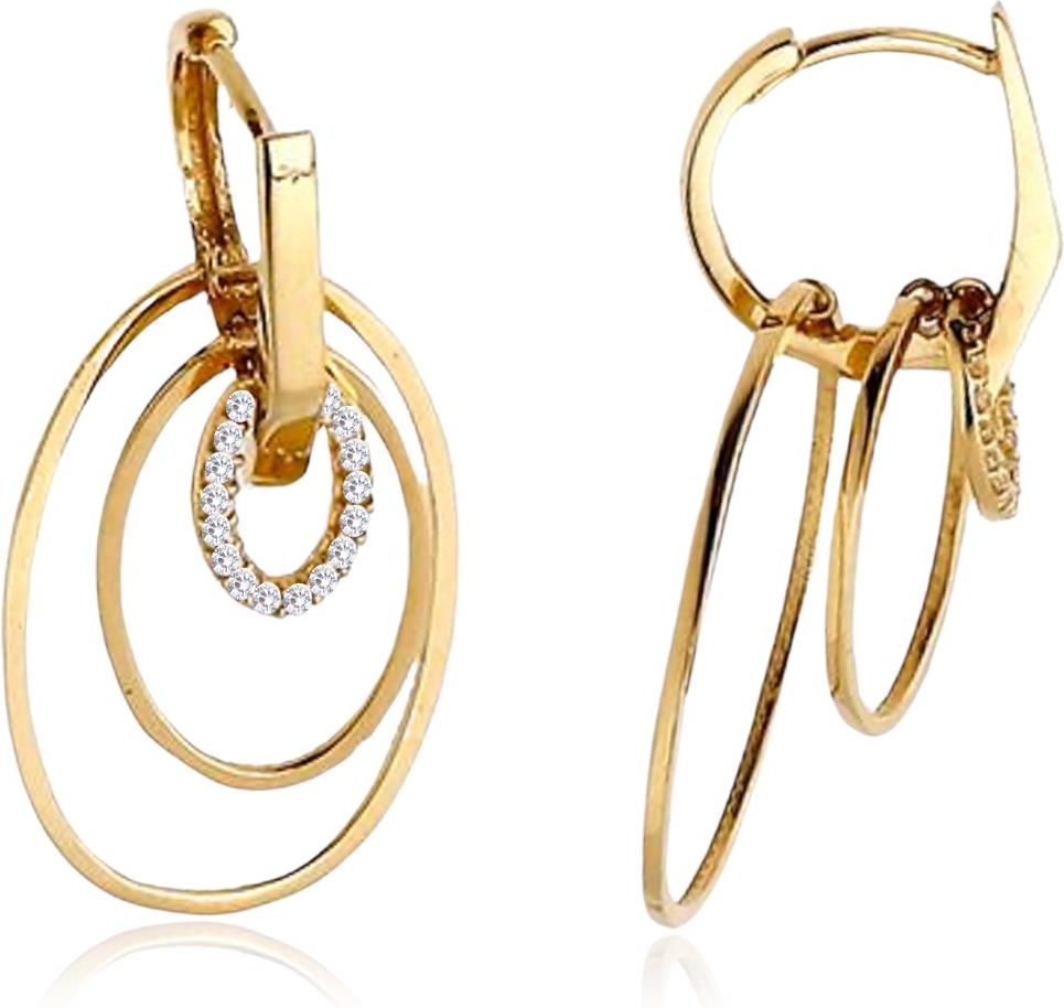 MINET Złote potrójne owalne kolczyki z białymi cyrkoniami Au 585/1000 2,65g Gdynia
