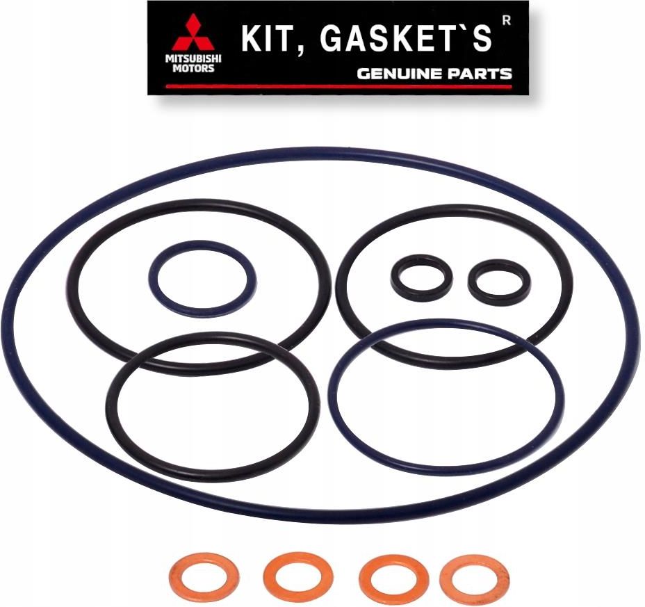 Zestaw montażowy - komplet 13 uszczelek / oringów pompy wtryskowej, pompy wspomagania oraz pompy vacuum Uwaga!! Umiejscowienie poszczególnych uszczelek wskazane na rysunkach. Producent - oryginał Mitsubishi Numery Mitsubishi - MF520601 MF520405 MF520406 MF520407 ME201138 ME201133 MH035237 MH035183 …