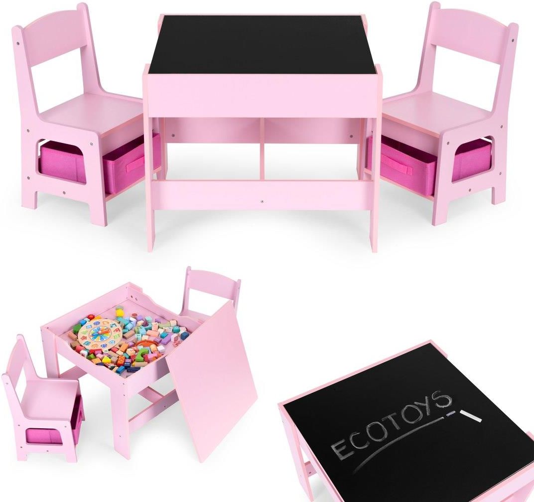 Multigarden Ecotoys Zestaw Mebli Dla Dzieci Stolik + 2 Krzesła Tablica Kredowa Różowy Gdynia